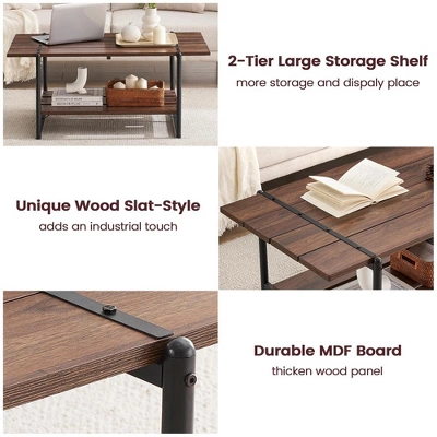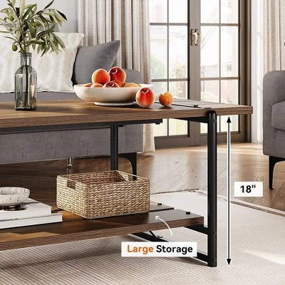 2-Tier Farmhouse 41” Large Wood Coffee Table with Storage Shelf -Modern Rustic Metal Rectangle Center Living Room Coffee Table Accent Furniture for Home Office,Easy Assembly