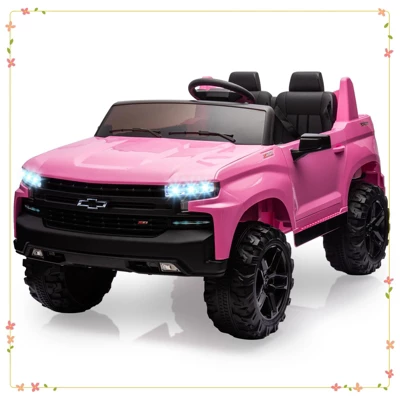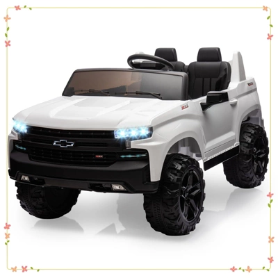 - Experience the thrill of adventure with the licensed Chevrolet Silverado, an exciting 2-seater battery-powered ride-on truck designed for endless fun! Featuring two powerful 120W motors and a 24V 7AH rechargeable battery, this vehicle guarantees robust performance and extended driving range. With a top speed of 5 miles per hour, it effortlessly conquers various terrains, offering your child an exhilarating driving experience.