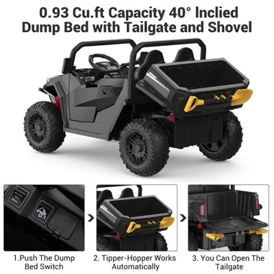 - High-Capacity Dump Bed & Interactive Shovel Featuring an automatic lift dump bed and a detachable shovel, this ride-on truck encourages imaginative play and outdoor adventures, allowing kids to load and unload like real construction workers.