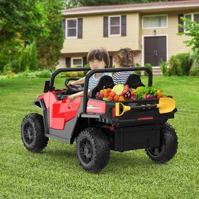 - Spacious 2-Seater & Durable Build Designed for shared play, the truck measures 47.6″ L x 27.1″ W x 25.5″ H and comfortably seats two children. Supports a maximum combined weight of 110 lbs. Rugged, heavy-duty construction guarantees hours of reliable fun.