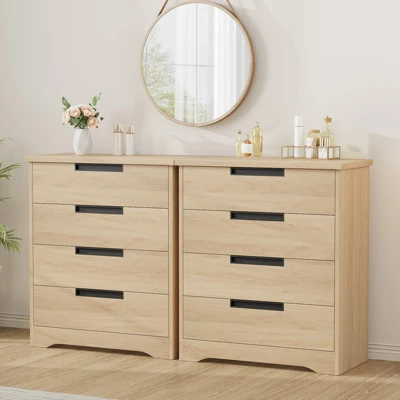 4 Drawer Dresser for Bedroom, Natural Dresser Chest of Drawers with Embedded Handles Design, Wooden Dresser Organizer for Living Room, Nursery, Hallway and Entryway