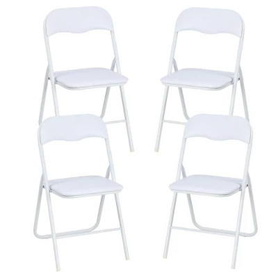 PU Leather Folding Chairs with Cushion, Stackable Metal Frame