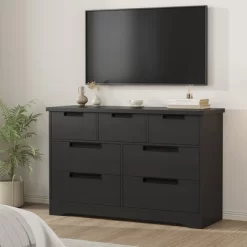 7 Drawer Dresser for Bedroom, Black 7 Chest of Drawers with Embedded Handles, Wooden Dresser Organizer Tv Stand for Living Room Nursery Hallway