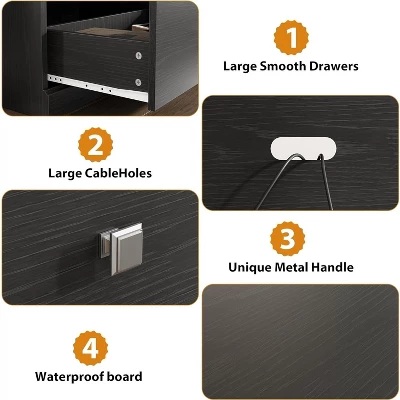 - CABLE MANAGEMENT: This entertainment stand features 3 metal handles for a sophisticated touch. The drawers open smoothly and quietly for easy access, keeping your space organized and clutter-free. With 3 cable holes at the back, this tv entertainment center effectively conceals cables for a tidy, streamlined appearance