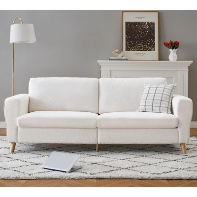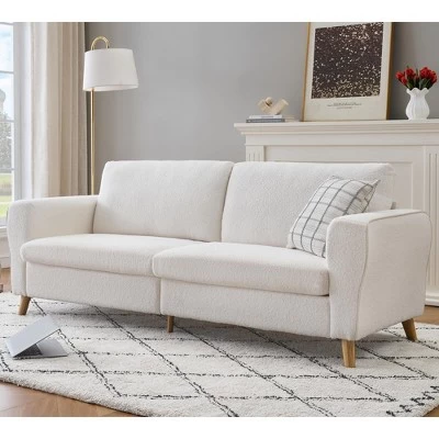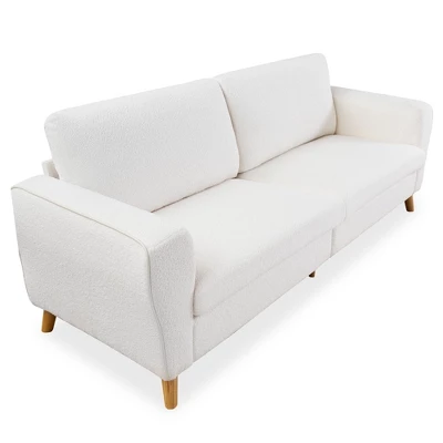 84″ Sofa Couch, Large Loveseat Sofa with Streamlined Armrests & Wood Feet, Modern Boucl¨¦ Sofa for Living Room, White