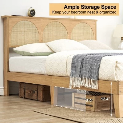 - RATTAN HEADBOARD—The headboard is handmade from natural rattan and combined with LED lights to create a warm and comfortable atmosphere that can be integrated with various styles of home decoration.