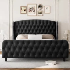 6/10 Inch Twin/Full/Queen/King Size Platform Metal Bed Frame Low Profile With Storage_Black/White