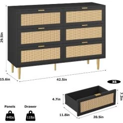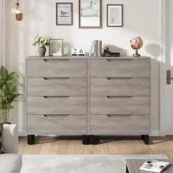 Wood Dresser For Bedroom, Chest Of Drawers With 5 Drawer & Metal Handle, Closet Store Organizer