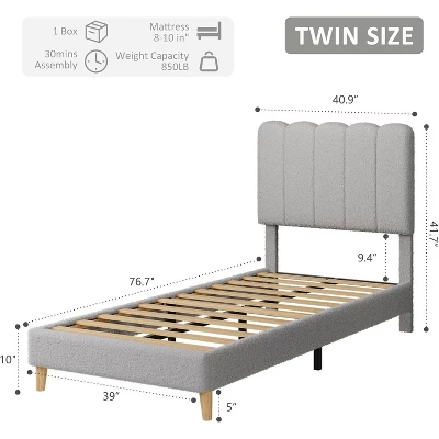 Bring comfort and modern charm to your child¡¯s bedroom with this twin size boucle upholstered platform bed. Designed with a cozy wave-shaped headboard wrapped in soft boucle fabric, this kids’ bed frame adds visual flair and a plush surface perfect for relaxing, reading, or watching TV. Its neutral color and contemporary look make it a great fit for girls, boys, or guest rooms alike.
