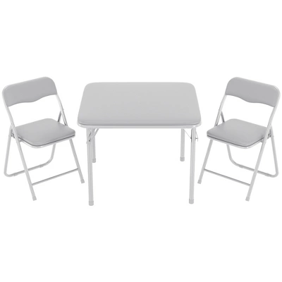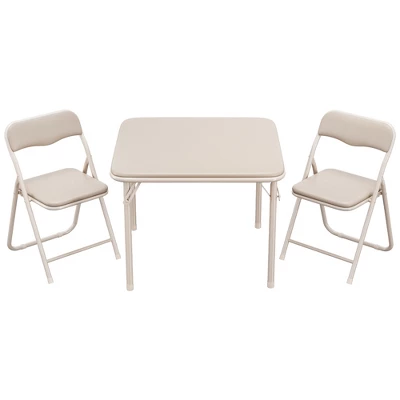 Boys and Girls Folding Table and Chairs Set of 3, Portable Table and Chair with Pu Soft Cushion, No Installation Required, Suitable for Eating, Reading and Playing