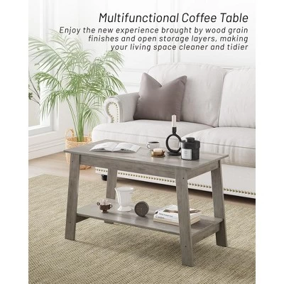 【Sturdy & Reliable Construction】Crafted from high-quality MDF and PD wood, our wood coffee table features a smooth, eco-friendly finish that is both easy to clean and waterproof. Reinforced with thick wooden blocks and L-shaped brackets, this living room table guarantees lasting stability and reliability, ideal for any modern living room or farmhouse decor.【Space-Saving Design for Small Spaces】Measuring compact dimensions of 35.6″ L x 18.3″ W x 2.6″ H, this small coffee table is designed to fit perfectly in small living rooms. The two-tier design offers additional storage without overwhelming your space, making it an excellent center table for small spaces.【Quick & Easy Assembly】Enjoy hassle-free assembly with clear instructions and no need for special tools. This minimalist modern center table can be set up in minutes, allowing you to quickly enhance your living room setup with minimal effort.【Versatile Home Accessory】This farmhouse wood coffee table seamlessly blends into various home decor styles. Use it as a coffee table in your living room, a TV stand, or an additional storage piece. Its versatile design helps organize your space while adding a rustic charm.【Dedicated Customer Service】Every rectangle coffee table is thoroughly tested for quality assurance. Should you have any questions, our professional and friendly customer service team is here to assist you within 24 hours, ensuring a positive experience with our living room furniture.