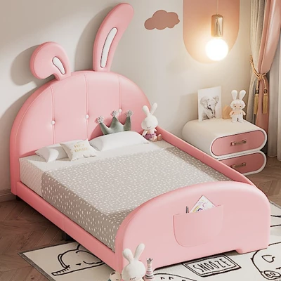Features:Product Type: BedColor: PinkMaterial: MDF+Plywood+PuOverall Product Dimension: 79.5″x 41.5″x 51.2″(L x W x H)Size: TwinDetail Product Dimension: Please refer to the Size imageOverall Product Weight: 56LBSWeight Capacity: 250LBSNumber of Slats: 12Recommended Mattress Thickness: 6″-8″