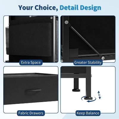 - 【Solid Frame, Superior Stability】The drawer dresser combines a robust steel frame, water-resistant wood top, and top-grade breathable fabric, ensuring lasting strength and stability.