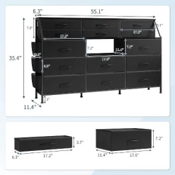 - 【55.12” W Super Long Wide Dresser】Fabric dresser for bedroom comes with 14 Drawers and 2 Shelves and is designed to maximize space and keep things organized. you can easily store and categorize items without wasting space.