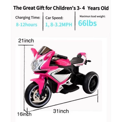 - [Perfect Gift for Kids]: The electric ride on motorcycle can exercise kids’ hand and foot coordination and balance ability. It will be the best gift for child’s birthday or Christmas. Owning the motor bike can enhance parent-child relationship,and leaving children a good childhood memories. Easy to Assemble.