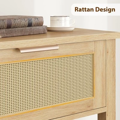 - Boho Style: The rustic living room sofa table features a blend of burlywood grain and rattan, creating a timeless bohemian style. This classic design complements any decor, infusing your room with a touch of sophistication.