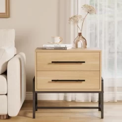 - [Sturdy and Durable]This 2 drawer bedside table features thickened metal legs and premium engineered wood for stability. Metal slides make drawers storage more items for daily use. The tabletop can support up to 100 pounds while the drawer can support 25 pounds