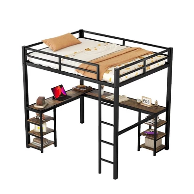 Description:Product name:Metal Loft Bed FrameSize:FullProduct Materials:MetalColor:BlackOverall Product Dimension:78.54″L x 56.77″W x 68.97″HOverall Product Weight:119.82LBSDetail Product Dimension:Please refer to the Size imageNumber of Package:2Package Dimension:Please refer to the SpecificationPackage Weight:Please refer to the SpecificationWeight Capacity:250lbs for upper bedRecommended Mattress Thickness:6 for upper bedNumber of Slats:10pcsBox Spring Required:NoAssembly Required:YesNotes:Manual measurement has been used, there may be some reasonable error.All the pictures are taken by actual samples, slight chromatic aberration may occur due to lighting or display.Packing list: Loft Bed with Desk x 1