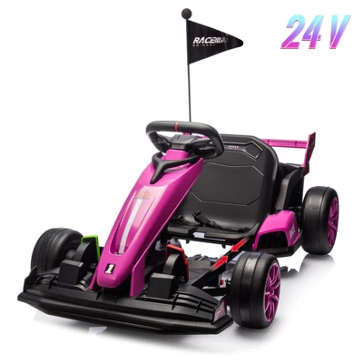 Experience the thrill of real racing with the 24V Kids Electric Go Kart, built for children aged 6 to 12 who love speed, drifting, and outdoor adventure! This high-performance ride-on drift car features dual 200W motors (400W peak), a 7Ah battery, and a variable speed mode that reaches up to 7.5 MPH – fast enough for fun, but safe enough for peace of mind. The adjustable seat and frame length grow with your child, extending from 38.6 to 49.6 inches, while the wide 14.3″ seat ensures a comfy ride even for kids over 5 feet tall. With realistic steering, a gas pedal for acceleration, and a separate brake pedal for quick stops, kids get a truly immersive driving experience. Crafted with a durable steel frame and polypropylene body, this kart includes four EVA foam wheels and rear nylon drift tires, delivering superior grip and drifting capability. The slow-start function and safety belt add extra protection for young drivers. When not in use, the go kart folds compactly to fit in a car trunk for convenient travel and storage. Whether it’s racing down the driveway or drifting around the park, this go kart is the ultimate gift for boys and girls who love speed and fun.