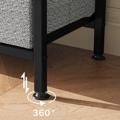 Modern Industrial TV Stand with 3 Fabric Drawers – This sleek, black metal TV stand features a spacious top surface and three fabric drawers with leather handles for ample storage. It’s designed to accommodate TVs up to 55″ and includes a lower shelf for additional display or storage options. The stand’s 360¡ã swivel casters make it easy to move and adjust in your space. Dimensions: 47.2″L x 11.8″W x 22.4″H.