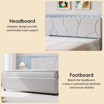 - 【Bed Frame with Headboard】This modern bed frame features clean geometric lines and upholstered headboard, combining elegant design with versatile style. Its refined aesthetic seamlessly blends with any home decor, creating a warm, cozy atmosphere in your bedroom.