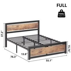 - STURDY & DURABLE – This metal full bed frame is made of heavy-duty steel slats to prevent sagging. And this platform bed with 9 support legs and 12 strong steel slats, an Industrial wooden grain headboard, and a footboard to ensure adds better support to your mattress. The full bed frame with headboard can stand up to 700lbs capacity