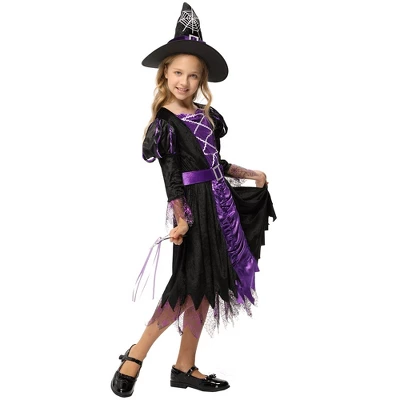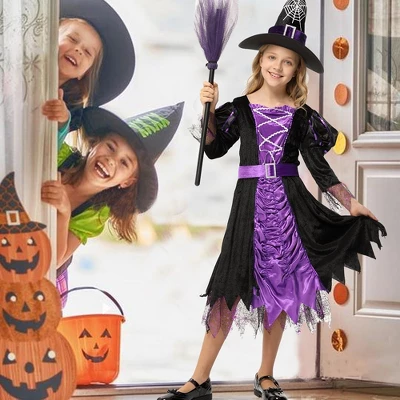 - 【Super Cute Witch Costume】Our halloween witch costume for girls includes 1 classic long witch hat ,1 witch dress and 1 belt.Such a great holiday party costume.Nice and very elegant for a cute witch in the family