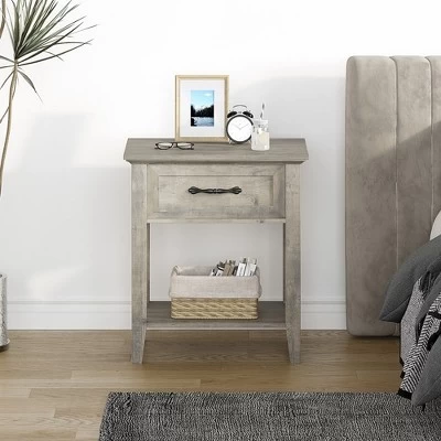 - Storage space: Alarm clocks, books, coffee, remote controls, etc. can be placed on the top of the bedside table, some personal items can be placed in the drawer, and storage boxes, speakers, etc. can be placed below. Bedside table dimensions: 19.7″ (D) x 15.7″ (W) x 23.4″ (H) Drawer Dimensions: 14.2″ (D) x 12.6″ (W) x 3.9″ (H).