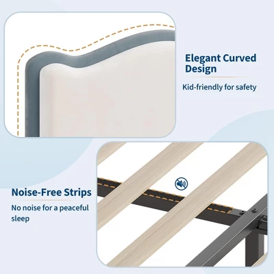 Charming Scallop Headboard: This kids bed frame girls twin bed frames for kids features a unique scallop-shaped headboard upholstered in soft, skin-friendly velvet. Plush padding offers cozy, ergonomic support¡ªperfect for toddler princess bed rooms or stylish girl bed frame twin setups