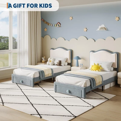 - Lovely Gift for Girls & Boys: Available in pink, beige, and blue, this twin bed frame with headboard brings charm and comfort to any room. Treat your toddler girl bed or twin kid’s bed with drawers to a cozy, beautiful place that sparks happiness and sweet dreams