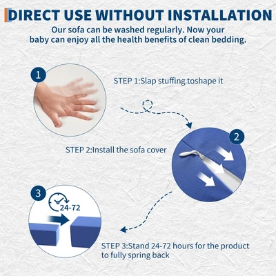 - NO INSTALLATION NEEDED – When you unpack the modular toddler couch for your playroom, it may look compressed; just unzip all sections and allow 24 hours to regain its shape, or speed up the process with a garment steamer