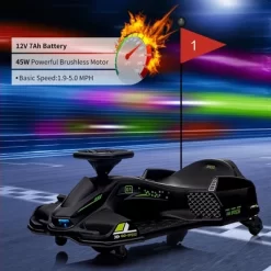 - User-Friendly Drift System: Designed for easy handling, the drift system allows kids to keep both hands on the steering wheel while controlling their drifts through precise throttle management, ensuring a fun and engaging driving experience.