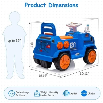 - Durable and Safe Construction:Constructed from high-quality PP and metal materials, this ride-on toy supports a maximum loading capacity of 66 lbs, making it suitable for kids aged 3-6 years. The anti-tipping design at the rear enhances safety, ensuring a stable and secure driving experience.