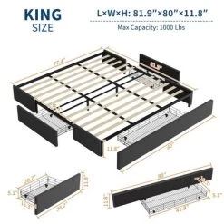 - 3-Piece Smart Storage Design:Â Features 2 side drawers and 1 large footboard drawer (76″L x 55.9″W frame) – stores blankets, books, or seasonal clothing without cluttering your bedroom.