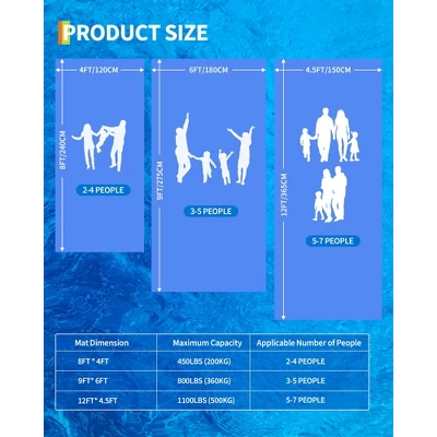 Lily Pad Floating Mat – Choose from 3 Sizes (8ft to 12ft) & 4 Vibrant ColorsHost unforgettable water adventures with this durable 3-layer XPE foam mat, supporting 2-7 people (size-dependent). Fade-resistant, UV-proof, and tear-resistant, it’s perfect for pools/lakes.Includes a 16.4ft bungee tether and straps for anchoring/storage. Lightweight (12-18lbs) and rolls up for easy transport. Use Tip: After opening the floating mat, please take some time to unfold it or roll in the opposite direction to make the water floating mat level, and then put the lily pad float mat in the water to make it full of buoyancy. This will bring a better user experience!