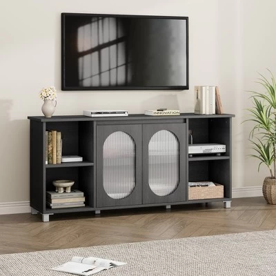 Modern TV Stand for 65 Inch, Black Entertainment Center with Storage Shelves & Glass Doors – Wooden Media Console Cabinet for Living Room, Bedroom