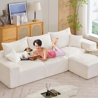 Modular Sectional Sofa, 110 Inch Oversized Deep Seat L-Shaped Couch with 5 Throw Pillows, Modern Chenille Floor Sofa, Comfy Cloud Sleeper Sofa for Living Room, Bedroom, Office, Experience oversized deep seating designed for up to four people, ensuring everyone can relax comfortably. Perfect for family gatherings or entertaining friends, this sofa promotes a cozy atmosphere in any setting.