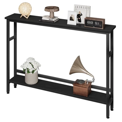 39.4″ Narrow Sofa Table, 2 Tier Skinny Console Table with Adjustable Shelf, Slim Behind Couch Table for Living Room, Entryway, Hallway, Black