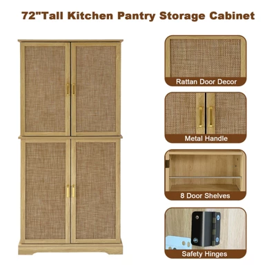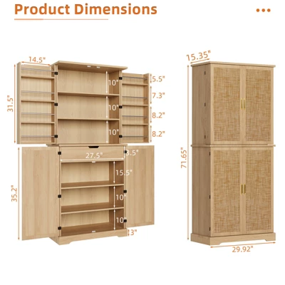 Upgrade your kitchen or living space with this 72″ Tall Farmhouse Rattan Pantry Cabinet, offering ample storage and a stylish touch to any room. Whether you’re organizing kitchen essentials, displaying decorative pieces, or tidying up the bathroom, this versatile cabinet delivers. Its sleek design and practical features make it the perfect solution for maintaining a clean, organized, and clutter-free home.