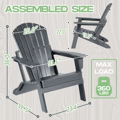 - Space-Saving Folding: The Folding Adirondack chairs offer convenience with a compact design that saves space. Easily transportable from porch to backyard, these chairs stack and store in seconds, simplifying outdoor leisure activities.