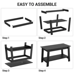 2-Tier Coffee Table For Small Spaces, X-Frame Living Room Low Coffee Table With Storage Shelf