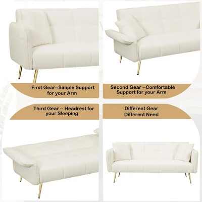 - 【Adjustable Futon Sofa Bed】3 adjustable positions can offer different comfort to you.if you want to watch TV in your living room you can adjust the back rest , if you want to take a nap you can adjust the angle to 180 °as a bed. All in all, the adjustable back rest can meet your different needs in your life.