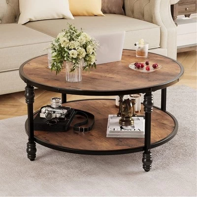 - [2-Tier Coffee Table] This coffee table boasts a spacious round top, measuring 34.25 inches in diameter, perfect for keeping your living room supplies organized and your daily essentials close at hand.