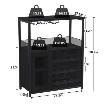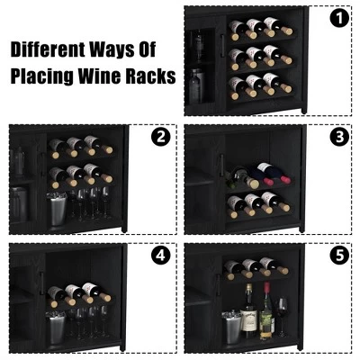 - LARGE CAPACITY WINE BAR CABINET WITH STORAGE:Bar cabinet with three detachable wine racks, which can hold up to 12 bottles of red wine.And it has adjustable shelves can hold up to 9 glasses.Plus,2-layer door cabinet can accommodate more irregular bottles of wine, liquor mixers and cup.