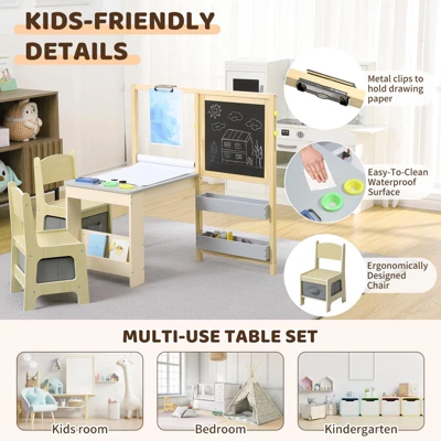 - Multifunctional Kids Art Table Set: Our multifunctional kids art table and bench set is designed with a double-sided easel for drawing, playing or learning. One side of the easel is the easy-to-write chalkboard, while the other side is the magnetic whiteboard. With the height adjustable knob, you can adjust the easel height to suit kids of different heights.