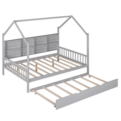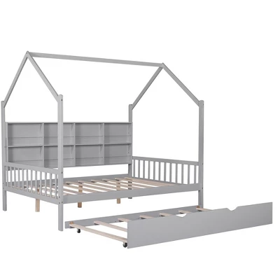 Description:Product Name: Kids Bed Main Material: Solid WoodMain Color: Gray/Pink/WhiteSize: Twin/Fullpacking list:House Bed x 1